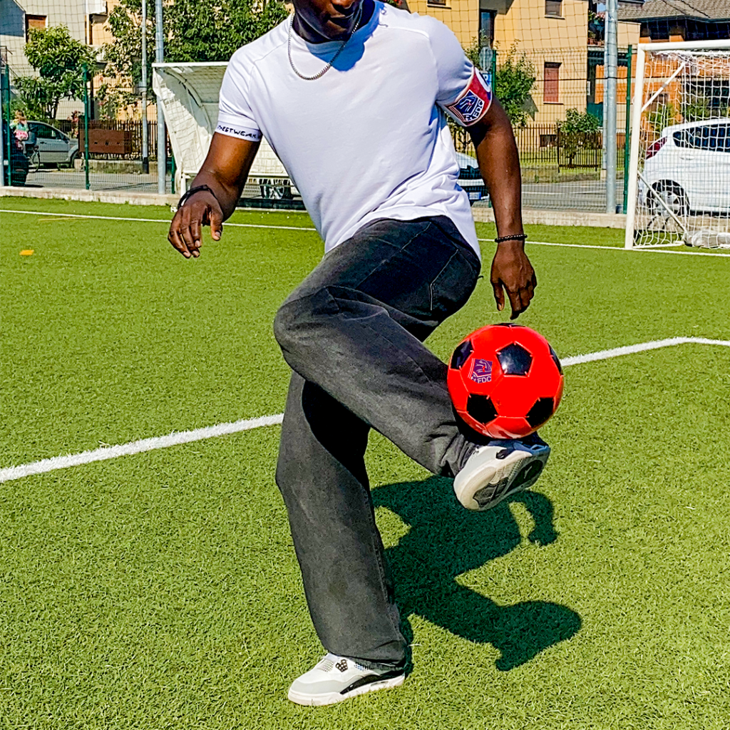 Captain’s armbands, Shinguards, Balls and T-shirts are fully customizable through the support of our graphics service, where an experienced graphic designer will work with you to create ad hoc graphics using the graphic elements provided at the time of order. Guaranteeing a result that fully reflects your team’s identity. You can also choose to compose your product graphics through our online configurator.
